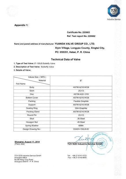 मानक:CERTIFICATE संख्या:220663 मुद्दा तिथि:2014-08-11 |