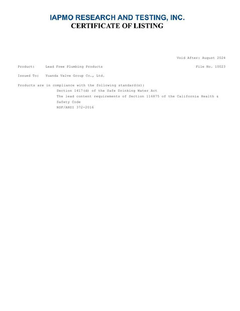 मानक:IAPMO RESEARCH AND TESTING INC |